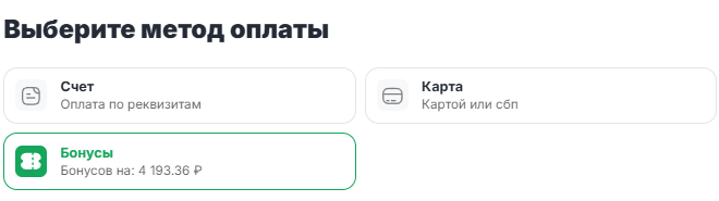 - Нажмите на кнопку «Оплатить» – система спишет средства с вашего Бонусного счёта.