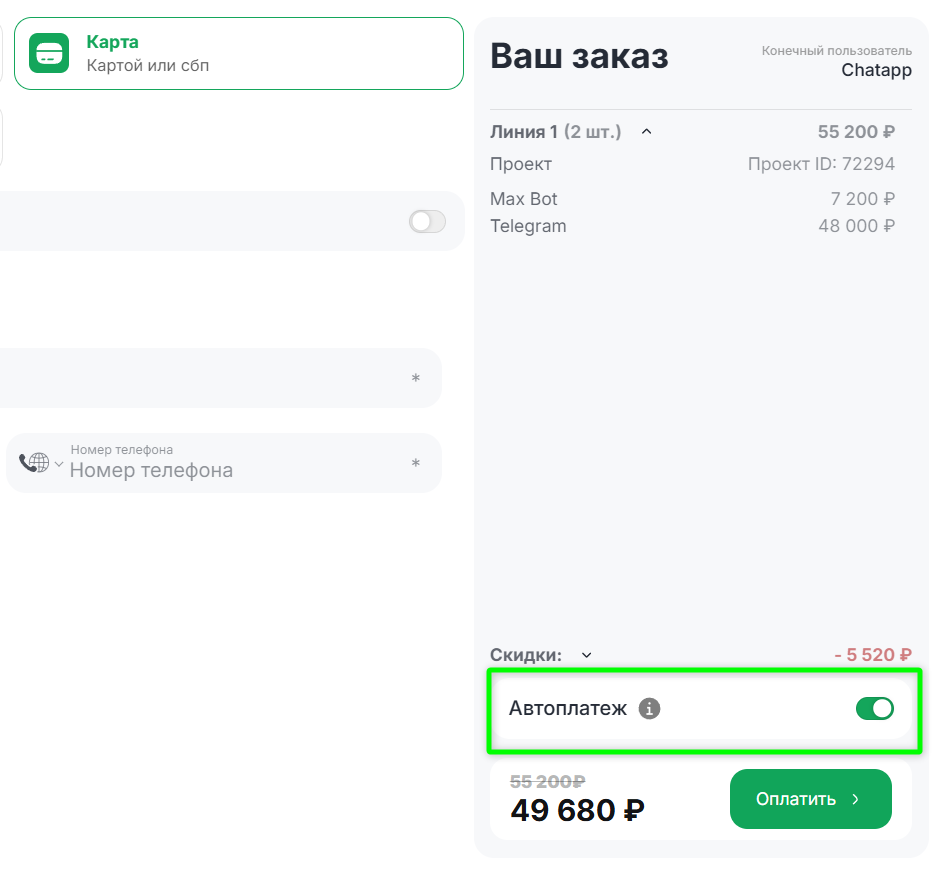 Автоплатёж доступен при оплате картой.