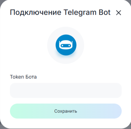 2. Введите уникальный Token Бота, который был получен при создании бота, и нажмите кнопку «Сохранить».