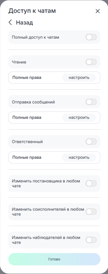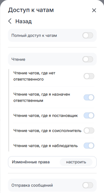 У вас есть возможность распределять сотрудников по Позициям участников в соответствии с их функциями в диалогах, чтобы эффективнее отвечать на сообщения клиентов. Позиции участников:• Ответственный — сотрудник, ответственный за общение в диалоге. • Постановщик — организатор диалога. • Соисполнитель — помощник сотрудника, ответственного за общение в диалоге. • Наблюдатель — просматривает диалоги, в которых назначен наблюдателем.