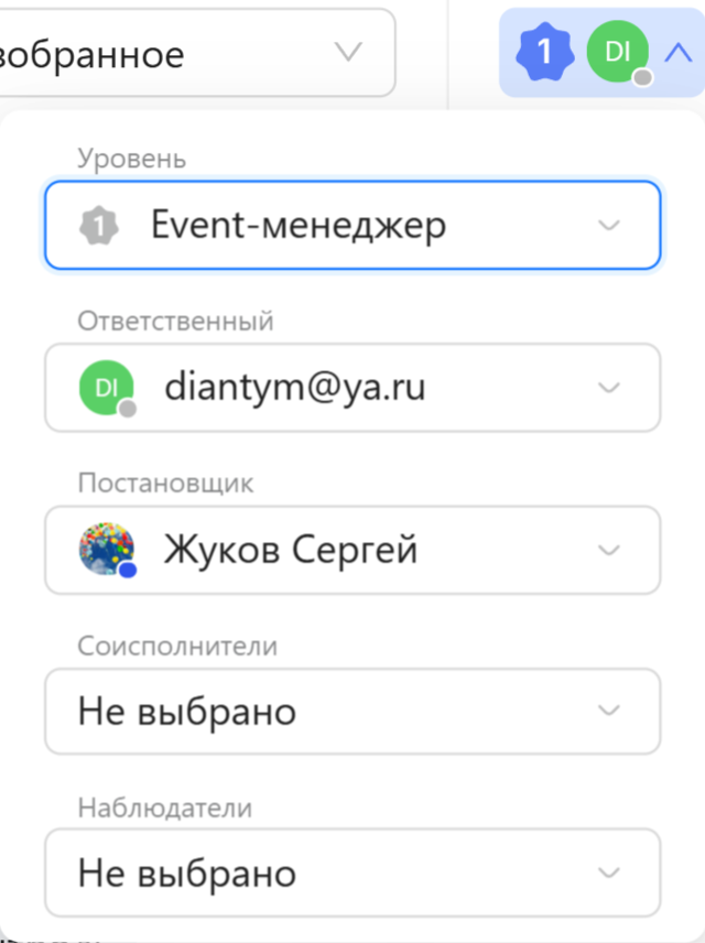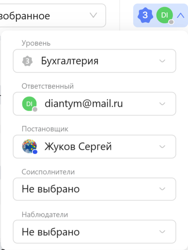 Как это настроить -- смотрите в статье "Чат боты" --> "Настройка уровней". Уровень, который присвоен диалогу, и ответственный сотрудник отображаются вверху области сообщений. Вы можете вручную изменить присвоенный автоматически уровень, при этом изменится и ответственный сотрудник за диалог в соответствии и назначенным уровнем. Как это сделать? 1. Нажмите на значок профиля ответственного за диалог сотрудника