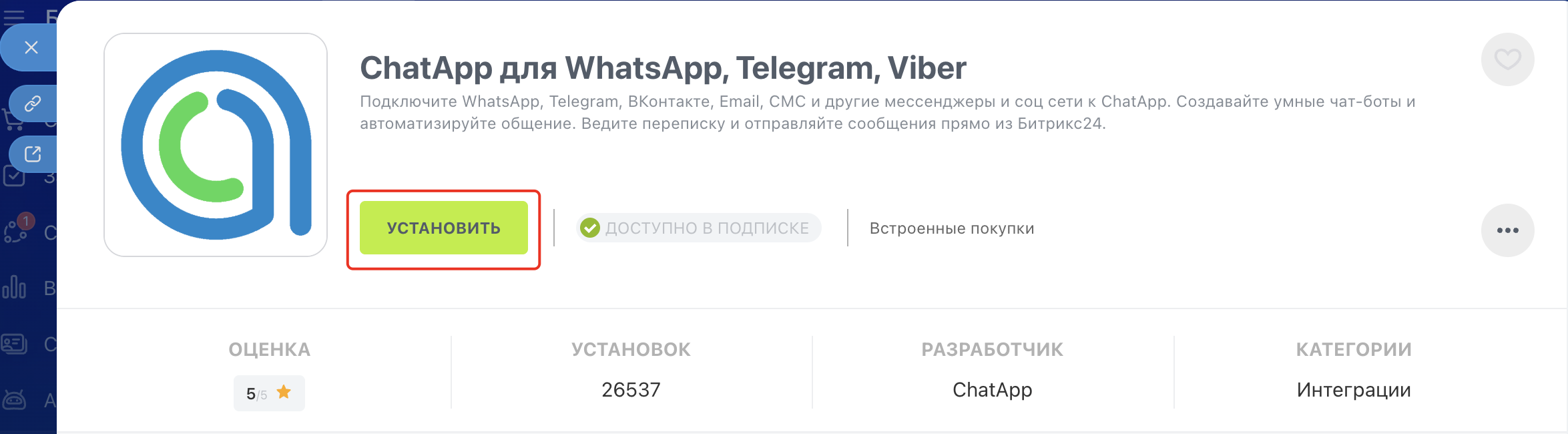 Приложение ChatApp устанавливается только через Маркетплейс Битрикс24.