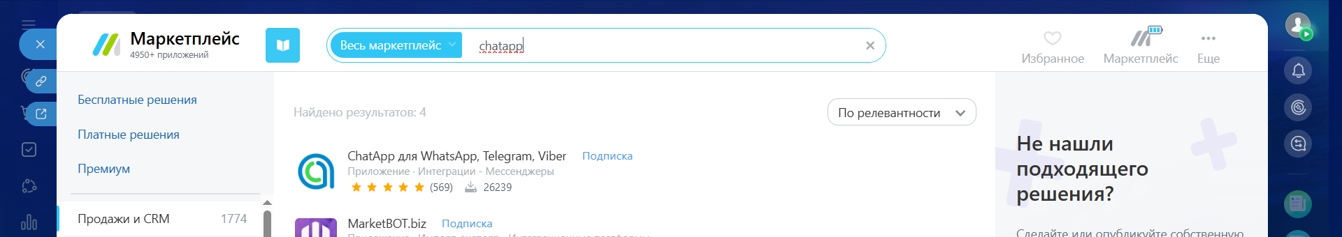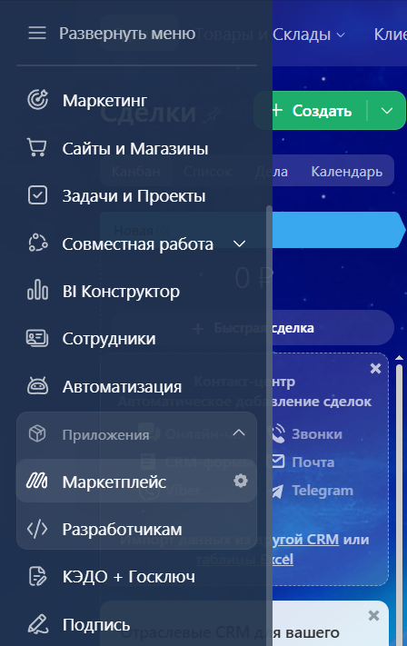 2. В левом меню выберите «Приложения» — «Маркетплейс».