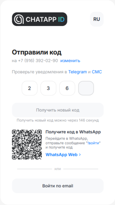 9. Подтвердите вход по коду из почты или Telegram.