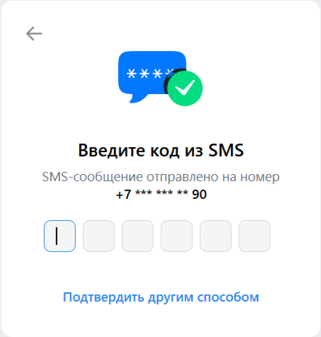 5. При регистрации по номеру телефона ведите полученный код из СМС. Вы можете подтвердить подключение другим способом, нажав на поле "Подтвердить другим способом".