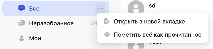 6. Открыть в новой вкладке – при нажатии будет открыта еще одна вкладка Dialogs, но с выбранным фильтром или стадией.