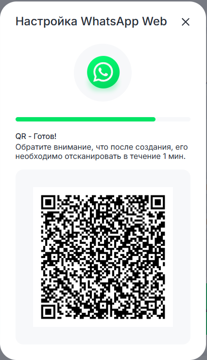 После сканирования QR-кода в настройках линии отобразится, что канал WhatsApp подключен.