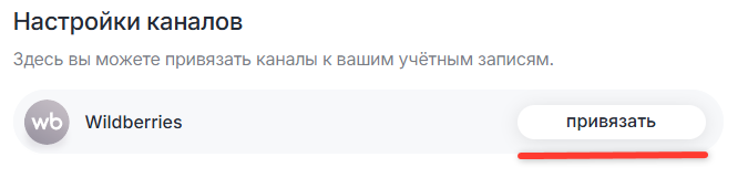 Шаг 1. Нажмите на кнопку «Привязать» напротив канала «Wildberries».