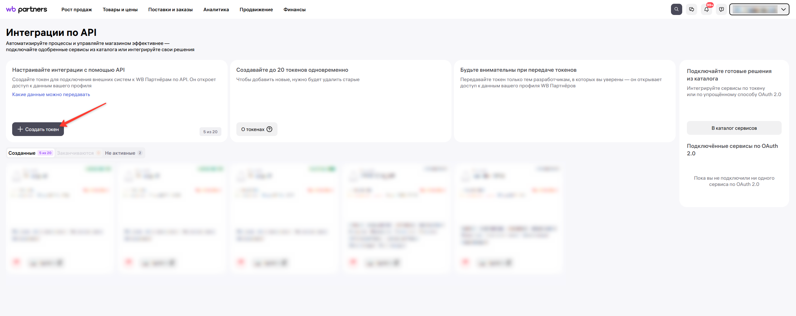 Скопируйте токен, он понадобится при подключения Wildberries в ChatApp