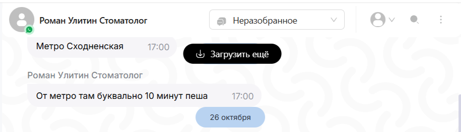 В каждом личном чате доступна кнопка «Загрузить еще».